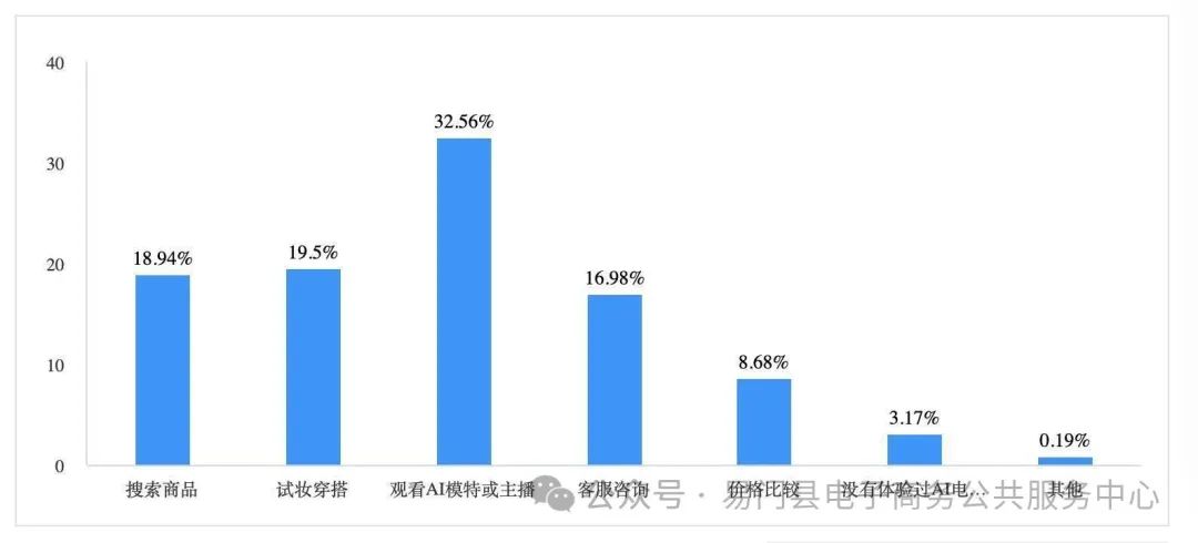 Îʾíµ÷Ñнá¹ûÏÔʾ£¬ÔÚ½ü1100ÃûÏßÉϹºÎïÆµÂʲî±ðµÄµ÷Ñй¤¾ßÖУ¬32.56%µÄÏû·ÑÕß½Ó´¥µ½µÄAIµçÉÌЧÀÍΪAIÄ£ÌØ»òÖ÷²¥Õ¹Ê¾¡¢½éÉÜÉÌÆ·£¬19.5%µÄÏû·ÑÕßÌåÑé¹ýÐéÄâ»»×°ÊÔ×±£¬ÁíÓÐ18.94%µÄÏû·ÑÕßÌåÏÖʹÓùýAIËÑË÷ÉÌÆ·¹¦Ð§¡£