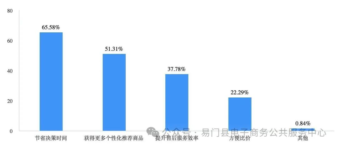 ´ÓÏû·ÑÕßµÄÌåÑé¸ÐÊÜÀ´¿´£¬½ÚÊ¡¾ö²ßʱ¼ä¡¢»ñµÃ¸ü¶à¸öÐÔ»¯ÍƼö¡¢ÌáÉýÊÛºóЧÀÍЧÂÊÊÇÄ¿½ñÏû·ÑÕß¶ÔAIµçÉ̹¤¾ßÓÅÊÆµÄ×î´ó¸ÐÊÜ¡£µ÷ÑÐÊý¾ÝÏÔʾ£¬ÔڿɶàÑ¡µÄÇé¿öÏ£¬ÕâÈýÏîÑ¡ÔñÕ¼±È»®·ÖΪ65.58%¡¢51.31%ºÍ37.78%¡£